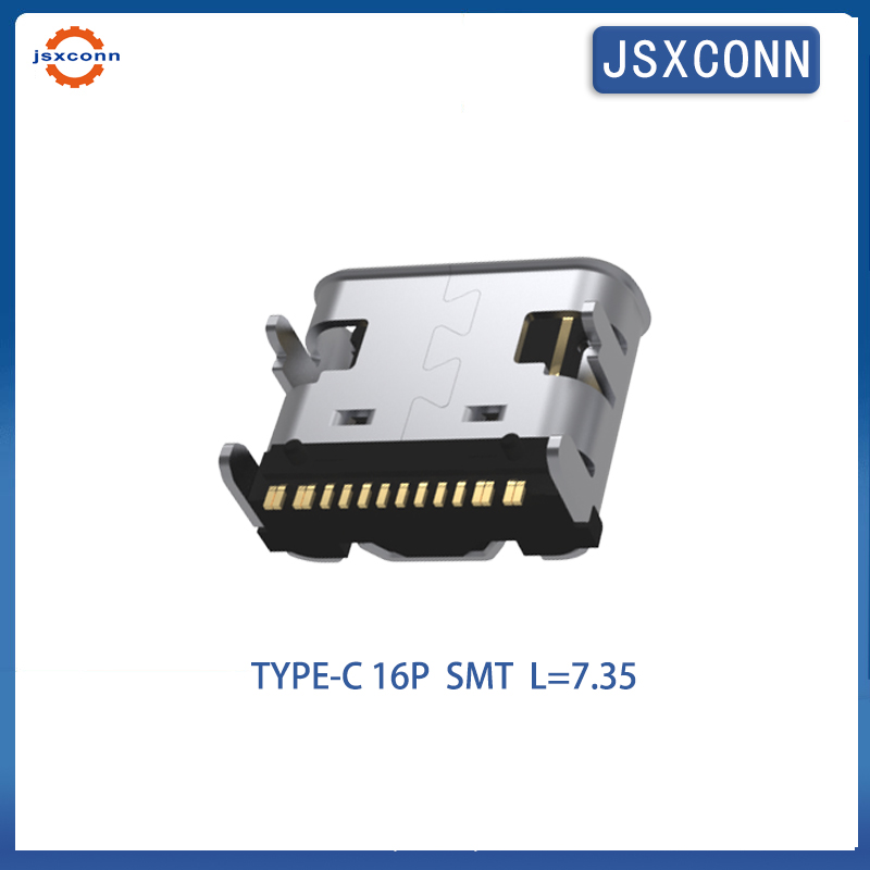 USB Type C 16Pin L=7.35 On slab SMT connector Curl the edge